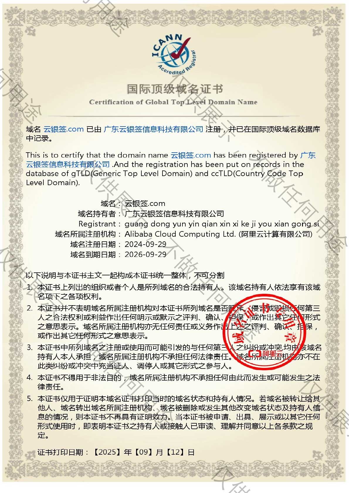 广东云银签信息科技有限公司