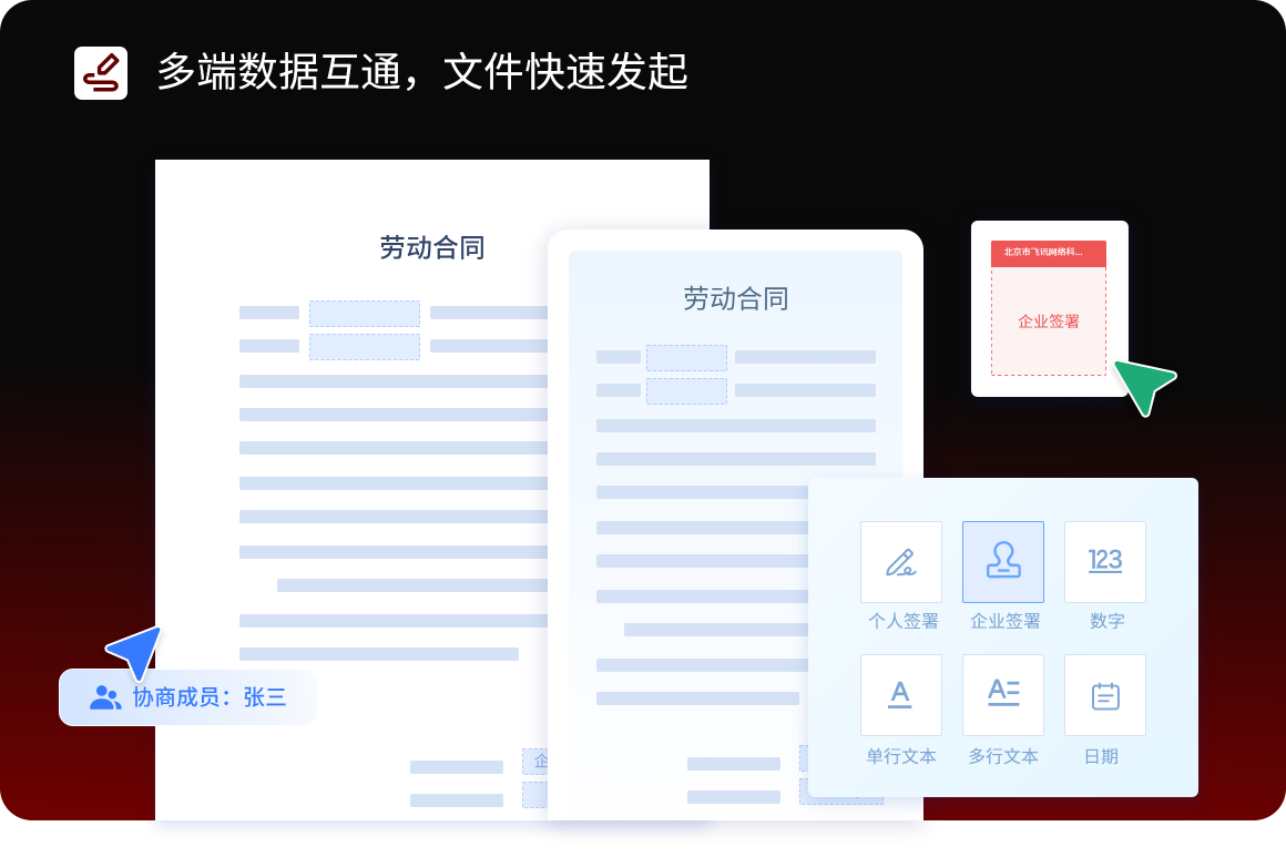 使用手机或电脑皆可完成合同模板编辑、合同发起的完整操作,办公设备不再受限,随时随地开启签约。
